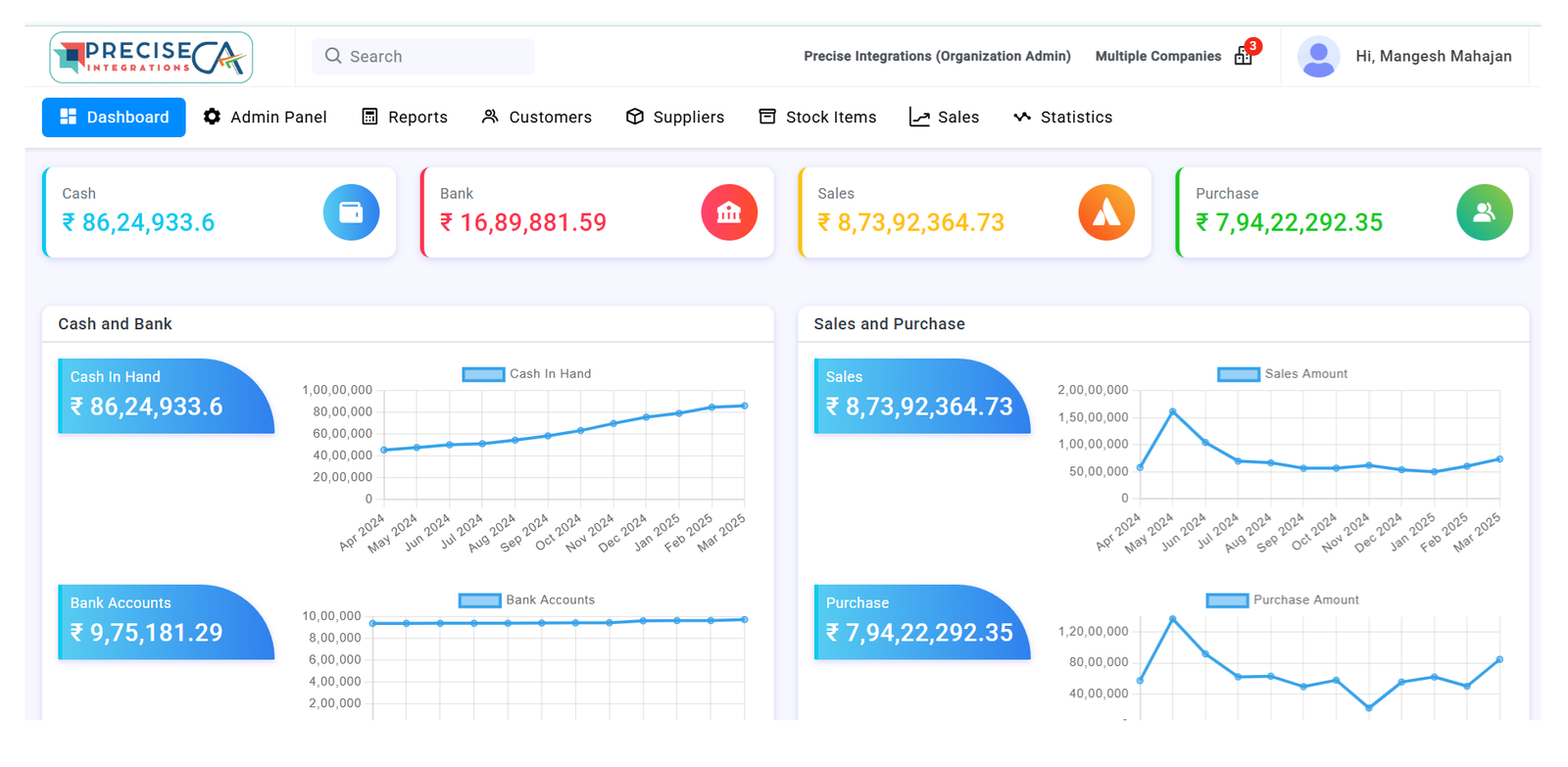Precise Integration goes beyond basic Accounting reports.We sync your complete Tally data to provide deep, multi-branch analytics and unparalleled financial intelligence, all secured with granular access control.
